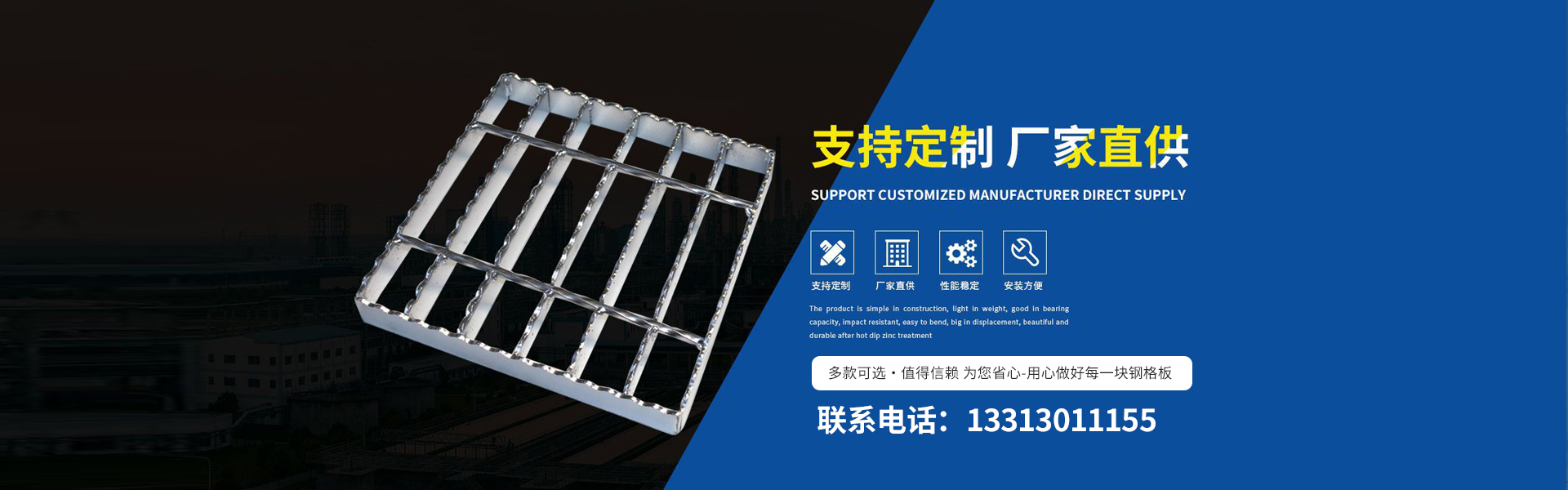 公司產品有鋼格板、踏步板、溝蓋板、鋼格柵板、等產品。對于客戶要求的不同工作環(huán)境,承載力、跨度、形狀和顏色,提供相應設計方案及成本控制。 我公司秉承“以客戶為中心,以低價高品質為基礎,以客戶滿意為目標”的經(jīng)營理念,以優(yōu)惠的價格、好的技術設備來贏得用戶的信賴,衡水新超峰金屬網(wǎng)業(yè)制造有限公司熱誠歡迎廣大客戶光臨。 衡水新超峰金屬網(wǎng)業(yè)制造有限公司成立迄今,正是由于各界朋友們對于我們的持續(xù)支持與關懷,及本公司全體同仁辛勤的耕耘與付出,使公司持續(xù)發(fā)展與茁壯成長。展望未來,我公司人懷著感恩之心,更加追求...